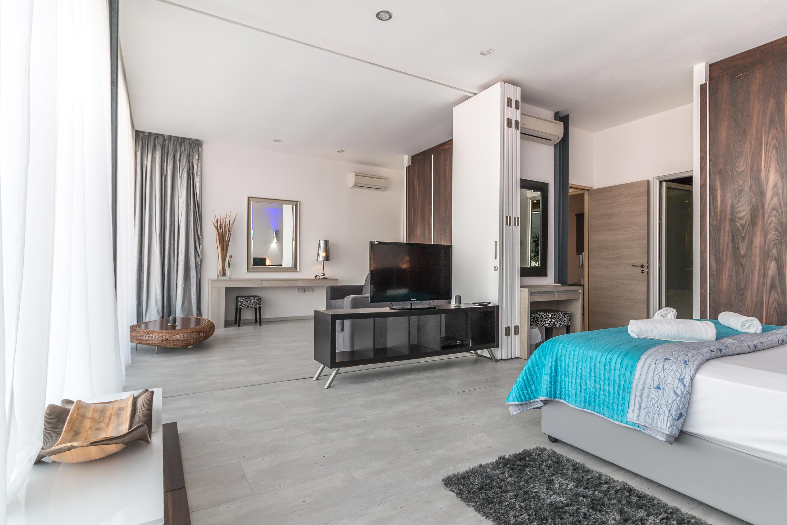 These rooms designed with open-concept living area are very bright and spacious – they are available with either double or queen beds. Room sizes are different – from 30 to 35 sqm. The interior is made with a warm-palette tons of walls and furniture. A work desk and stationary set are at your disposal. Makeup mirror and chair are also included.